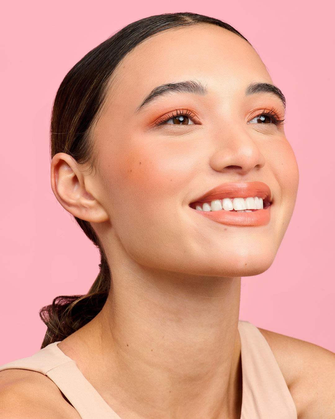 Start at the apples of your cheeks and then blend up and out. Layer for bolder colour. Also try it on your lips and eyelids for a monochromatic look.
